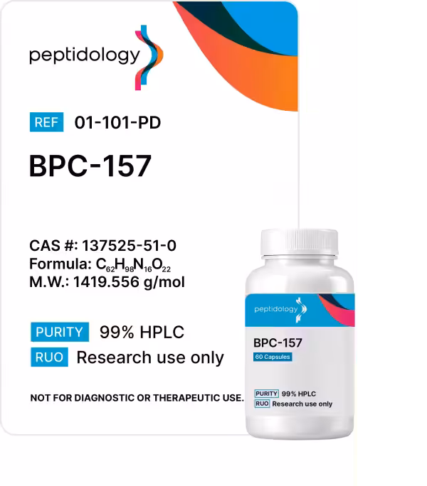Product Specifications: BPC-157 in capsule form. 60 Capsules/bottle, each capsule contains 500mcg of BPC-157.